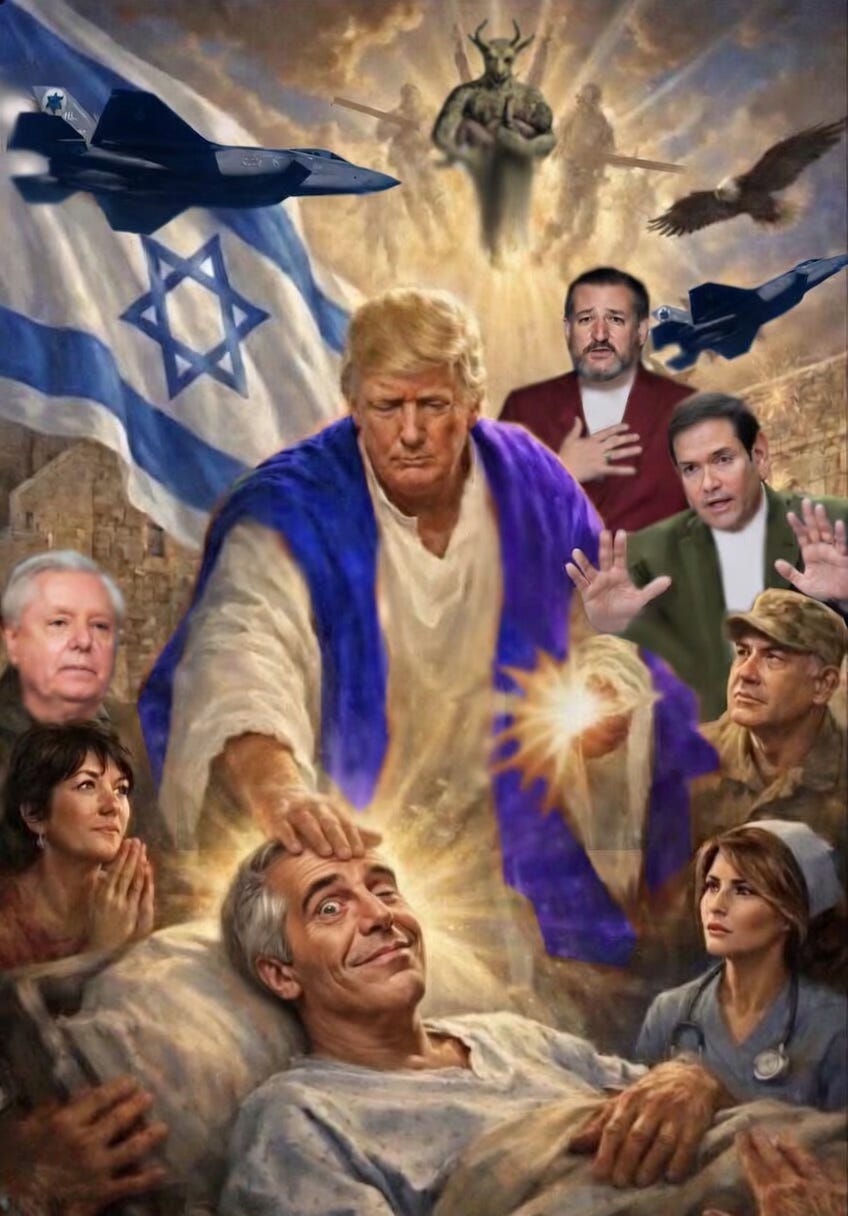 Hi Amy, I voted for Trump as being insane but I also believe he is being "handled". But things are becoming so crazy. I watch the really great podcasts of DDGotAPodcast and his take on that now-deleted AI picture is that Trump appears as The Magician as seen in a pack of Tarot cards and he showed the card on his podcast and The Magician is wearing the same garb as Trump is in the AI picture. I agree with DD. Another man, a pastor, opined that America is doomed to crash at this point and I feel that too. Destruction is hanging over us. Trump and his boss Bibi are bringing it down. Although who will send billions to Israel when America crashes I don't know. Of course D.C. can just keep printing worthless paper money like they presently do. The old testament tells about all the many evil kings that ruled Israel (and other Empires) and America also has had myriad evil rulers. Just in the last years America has had the Bushes, the Clintons, Obama, Biden and Trump. Reagan was no good either.