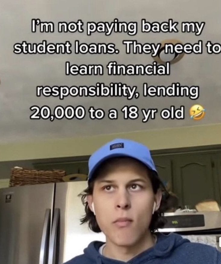 F paying back your student loans the education ought to be free, and that goes for our killer medical system too. Lol damn america where Trump gets 231 million views and the TV debates